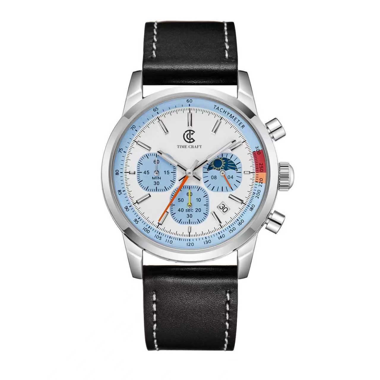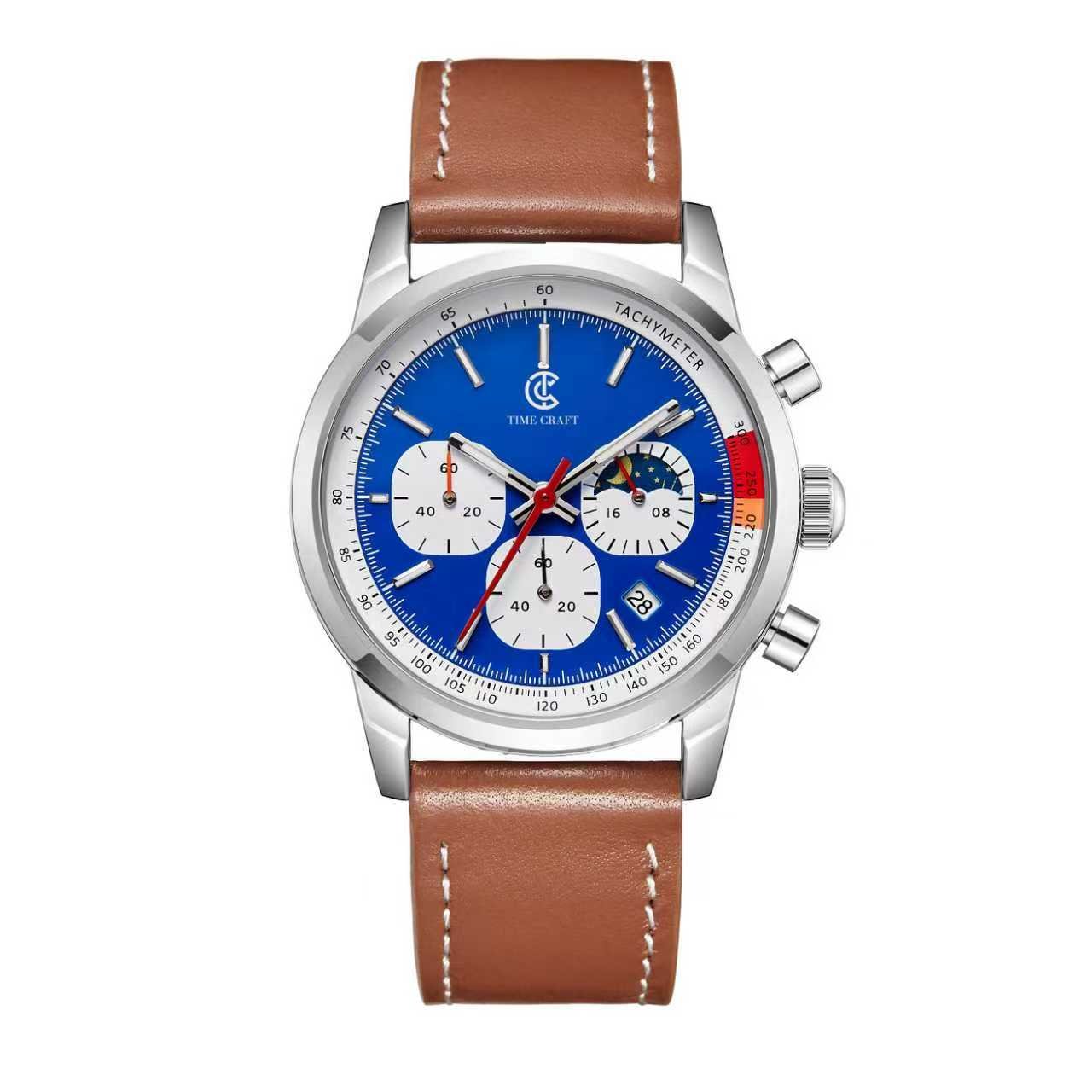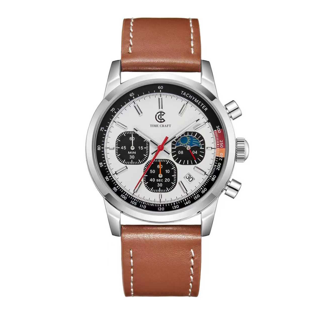 The Time Craft Classic Brown Leather Chronograph Watch features a timeless and elegant design perfect for everyday style. Its premium brown leather strap provides a comfortable fit, while the silver white dial adds a clean and sophisticated look.